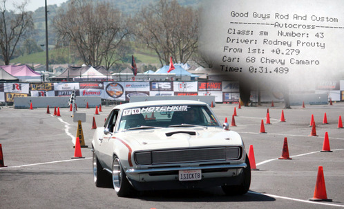 Though the Goodguys Spring Nationals in Scottsdale, Arizona started off a little damp, when the skies cleared and the ground dried up there was still plenty of autocrossing to be had. Representing Hotchkis at this event was Dan Weishaar in “E-Max,” the Hotchkis ’70 Challenger T/A, Dick Eytchison in his ’65 Chevelle Sedan, and Robert Pierek with his ’71 Camaro “F-71.” This colorful trio put down some great times with Dan Weishaar and Robert Pierek coming in third and fourth place against some very tough competition. Dick Eytchison came in a very respectable 13th place beating out many smaller, lighter, more powerful cars and clocking in a time only two seconds slower than Weishaar.